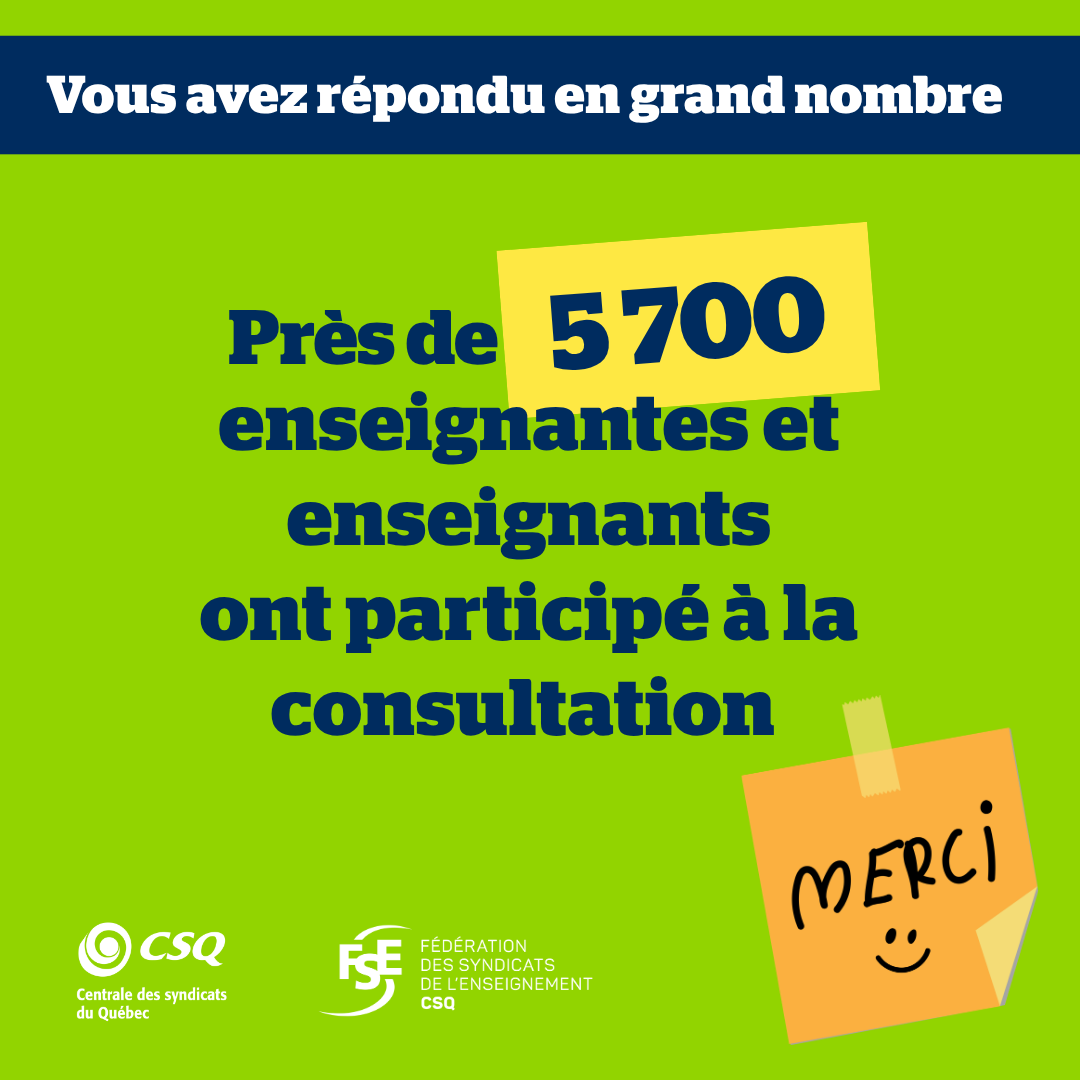 Rappelons que cette consultation s’inscrit dans le cadre de l’offensive professionnelle et pédagogique entreprise par la FSE‑CSQ au printemps 2024, visant à améliorer le quotidien du personnel enseignant en dehors de la voie de la convention collective. Elle fait également suite au dépôt d’une pétition, signée par plus de 21 000 enseignantes et enseignants, réclamant un chantier sur l’évaluation des apprentissages.